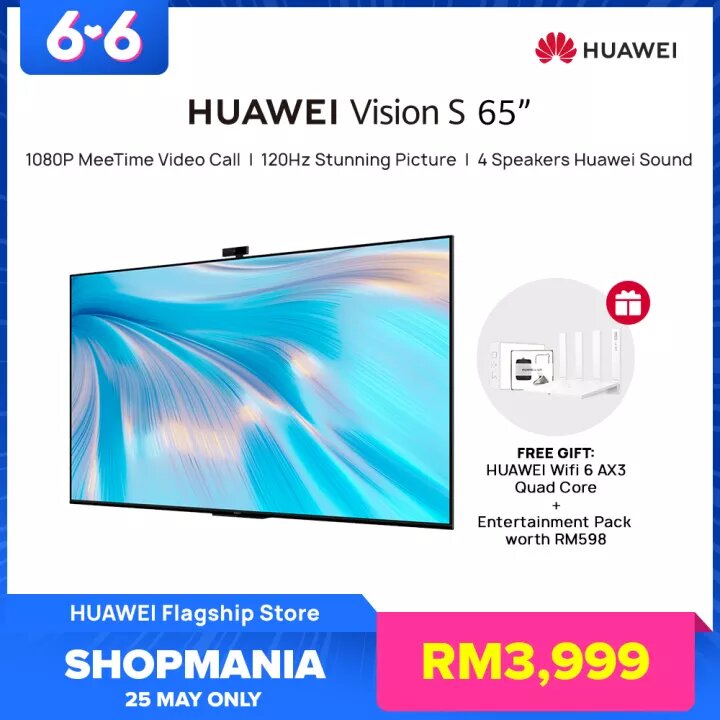 ▼ HUAWEI Vision S 65″ Smart TV —— 只需RM3999