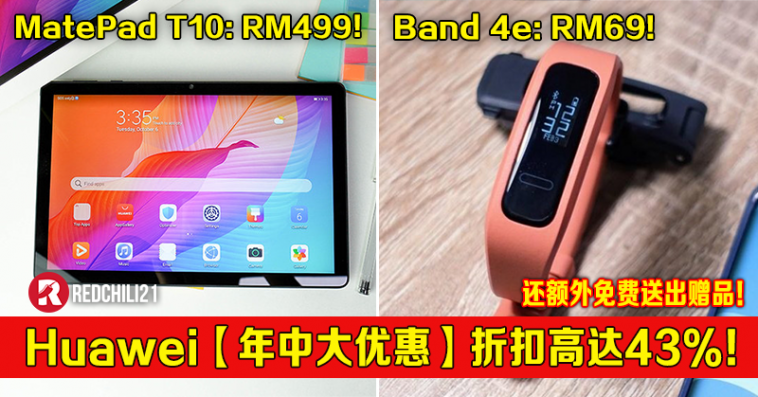 HUAWEI MatePad T10 Tablet 只需RM499,HUAWEI Band 4e Smart Band 只需RM69!