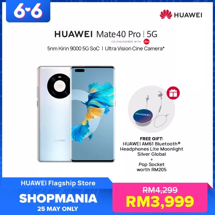▼ HUAWEI Mate 40 Pro 5G (8GB RAM + 256GB ROM) Smartphone —— 只需RM3999(原价RM4299)