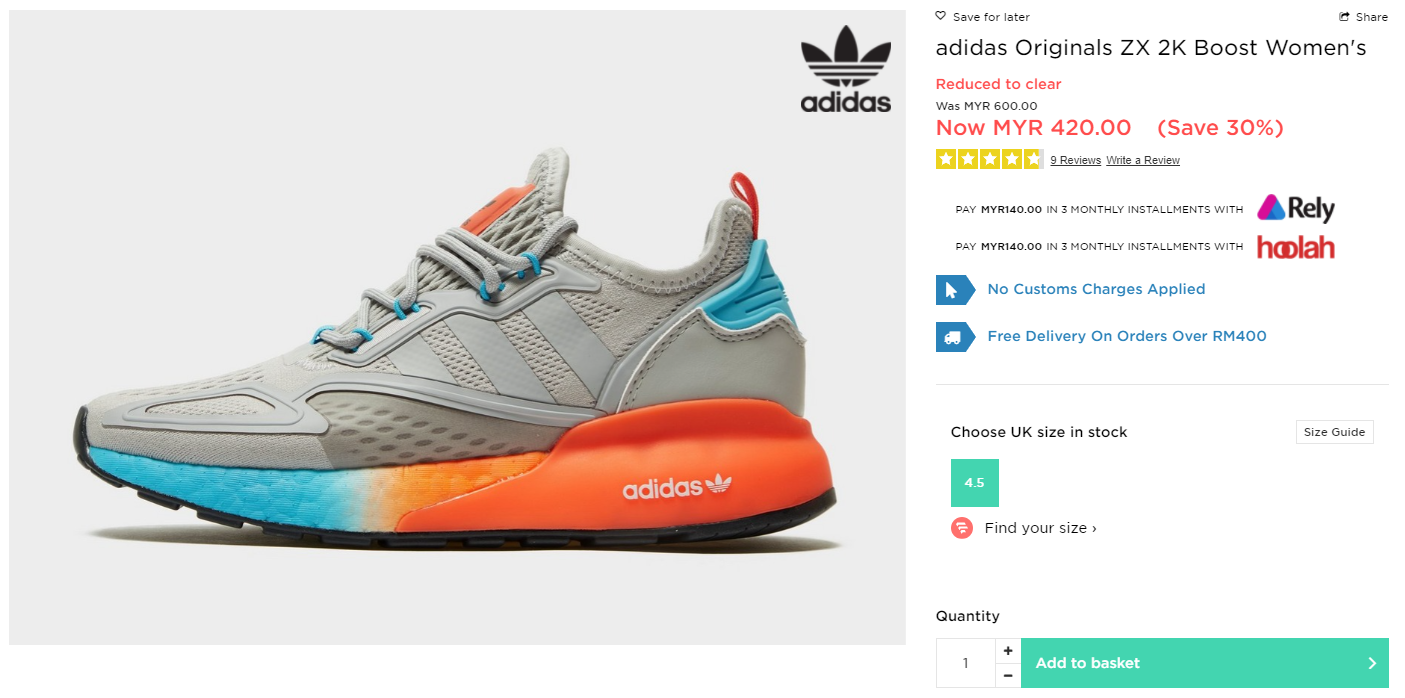 ▼ adidas Originals ZX 2K Boost Women’s【折扣30%】- 只需RM420(原价 RM600)