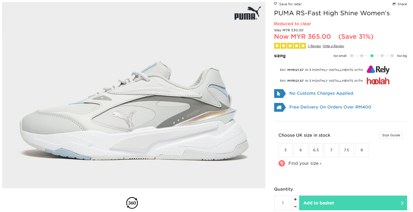 ▼ PUMA RS-Fast High Shine Women’s【折扣31%】- 只需RM365(原价 RM510)