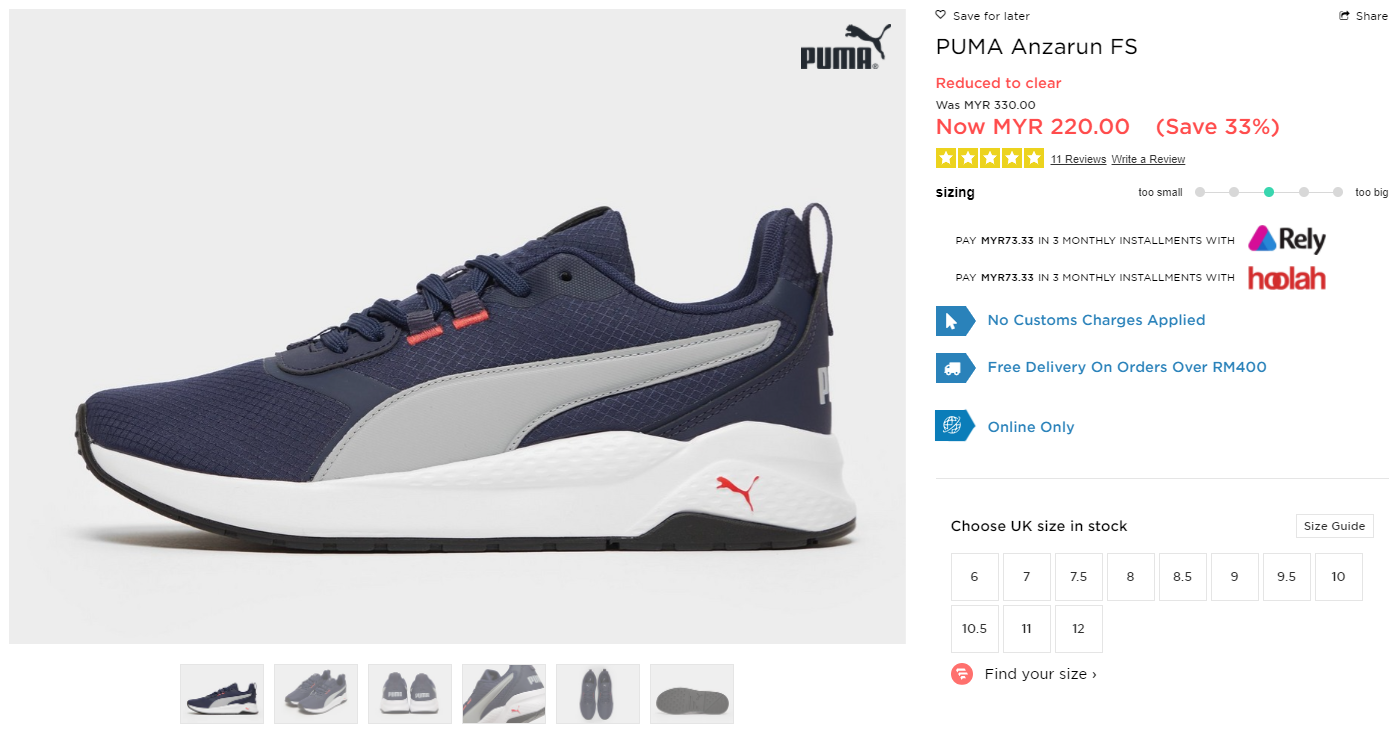 ▼ PUMA Anzarun FS【折扣31%】- 只需RM220(原价 RM330)