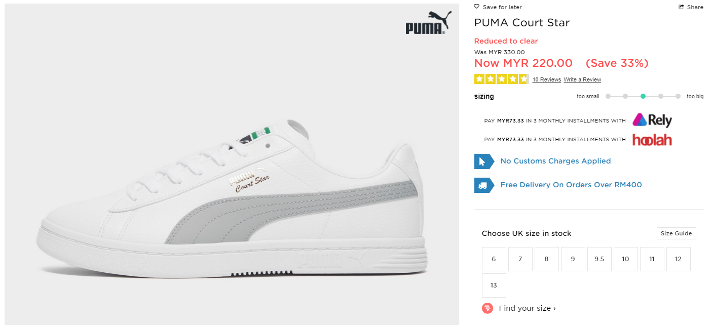 ▼ PUMA Court Star【折扣33%】- 只需RM220(原价 RM330)
