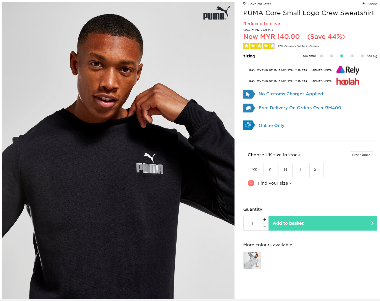 ▼ PUMA Core Small Logo Crew Sweatshirt【折扣44%】- 只需RM140(原价 RM249)
