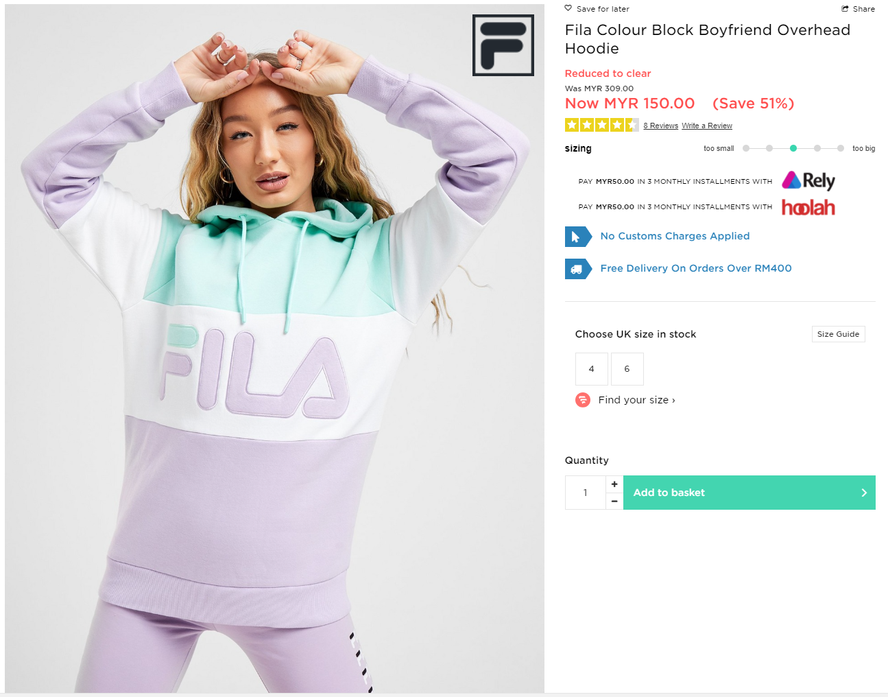 ▼ Fila Colour Block Boyfriend Overhead Hoodie【折扣51%】- 只需RM150(原价 RM309)