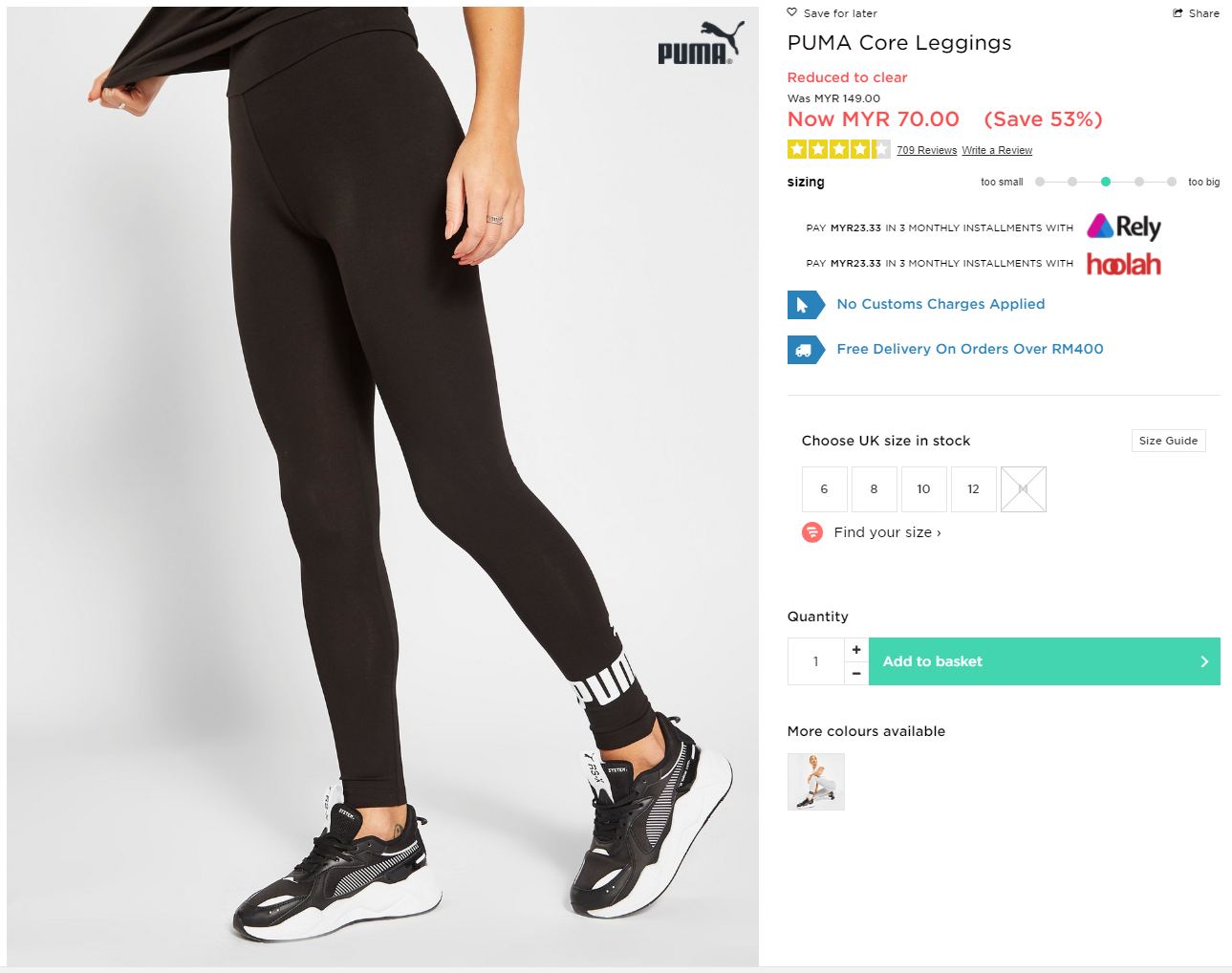 ▼ PUMA Core Leggings【折扣53%】- 只需RM70(原价 RM149)