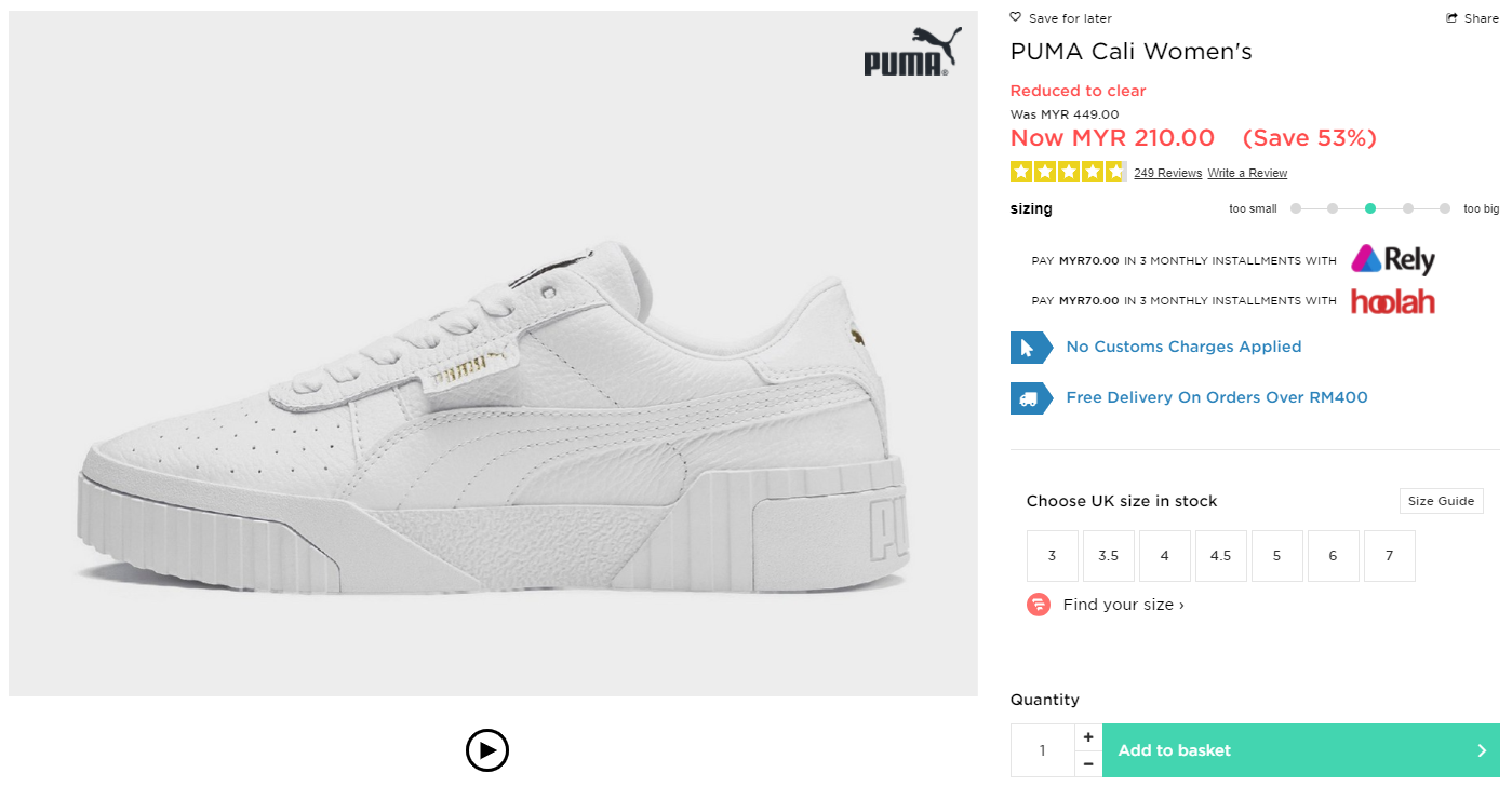 ▼ PUMA Cali Women’s【折扣53%】- 只需RM210(原价 RM449)