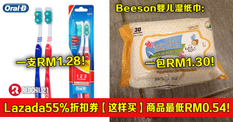 ※ 购买1套2支装牙刷(原价RM5.90)折扣55% + Lazada Wallet 支付可折扣RM0.10 + 免邮费只需RM2.55!平均一支牙刷只需RM1.28!