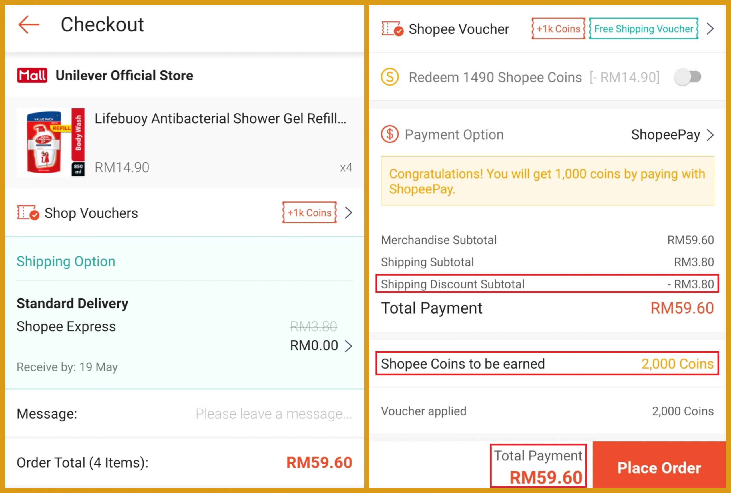 ④ 4包Lifebuoy(850ml)沐浴露(原价RM59.60),折扣你领取2000 Coins(RM20)也就说一包沐浴露只需RM9.90!