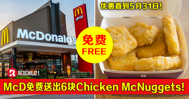 别忘了~通过McDelivery 购买美食!免费送出6块Chicken McNuggets
