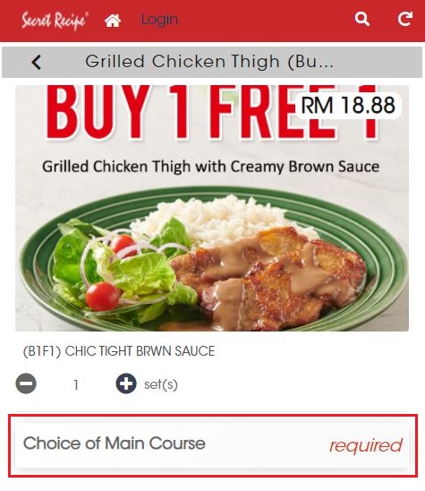 Step 3: 点击“Choice Of Main Course” 选择你的Side Dish!