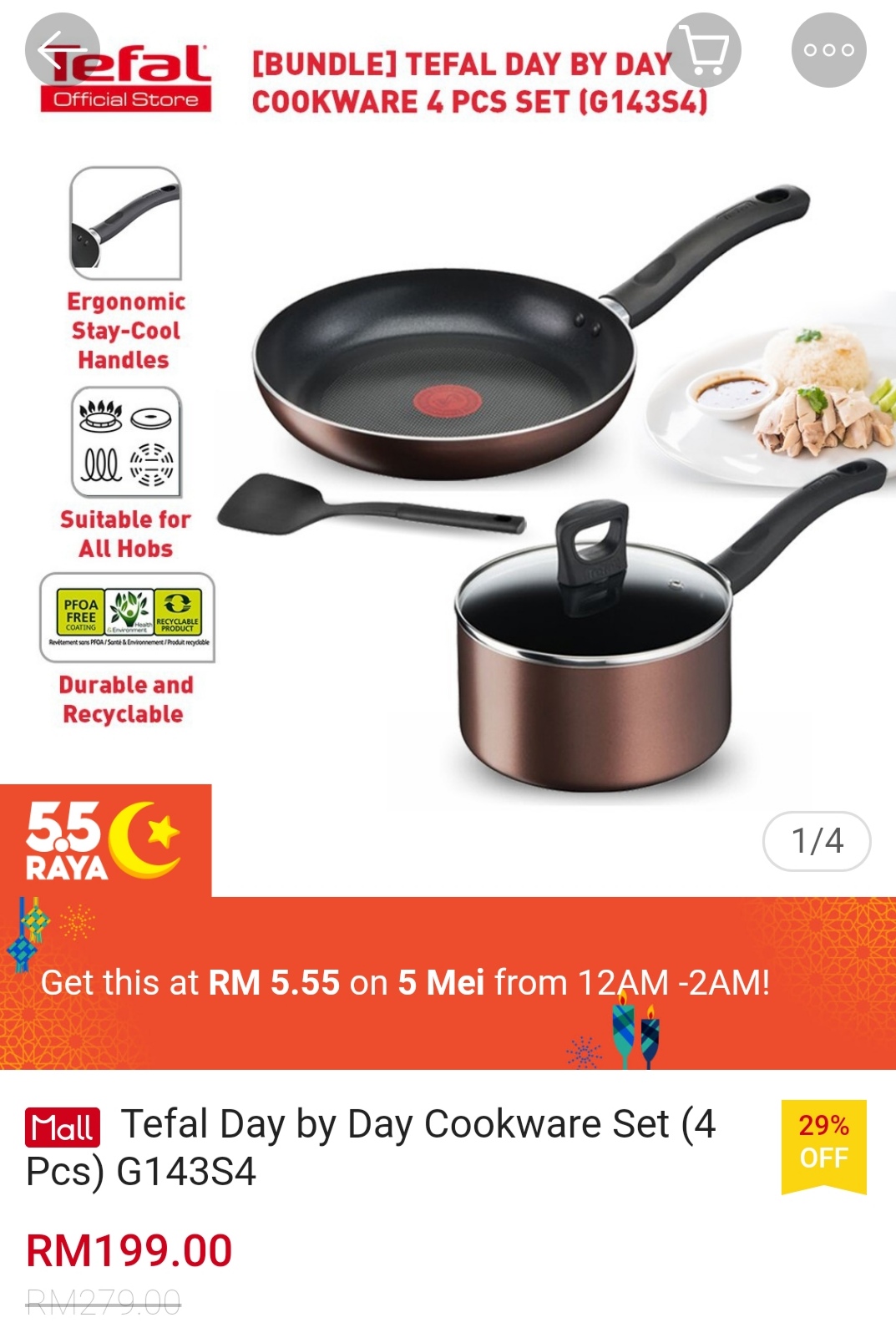 ▪ Tefal Day by Day Cookware Set (4 Pcs) G143S4 – RM279 RM5.55