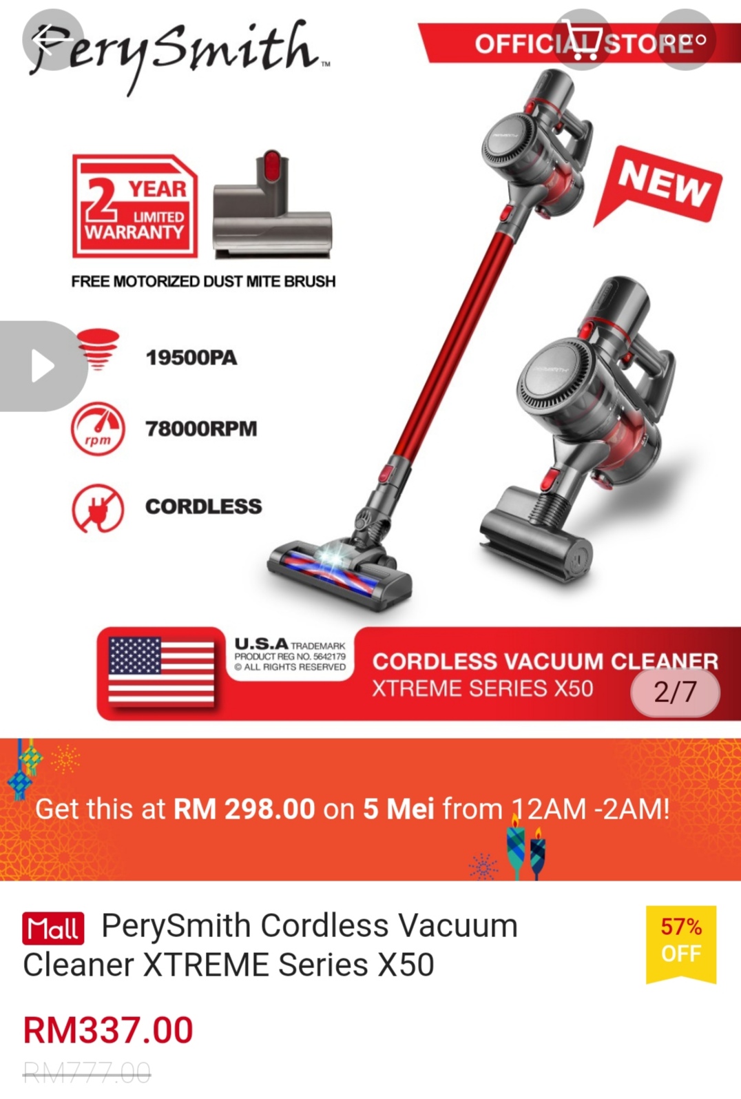 ▪ PerySmith Cordless Vacuum Cleaner XTREME Series X50 – RM777 RM298