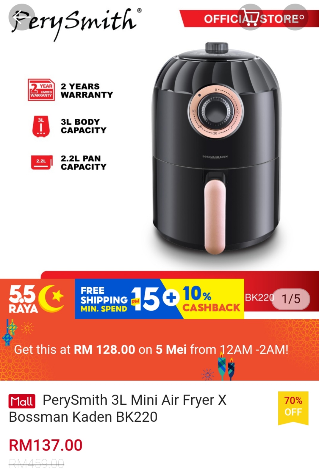 ▪ PerySmith 3L Mini Air Fryer X Bossman Kaden BK220 – RM459 RM128