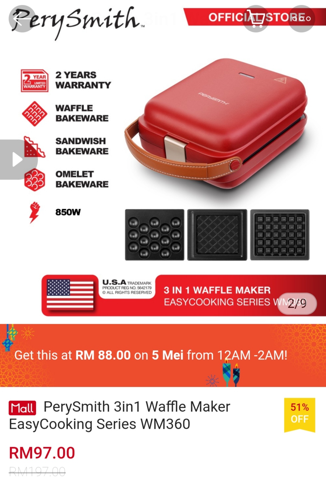 ▪ PerySmith 3in1 Waffle Maker EasyCooking Series WM360 – RM197 RM88