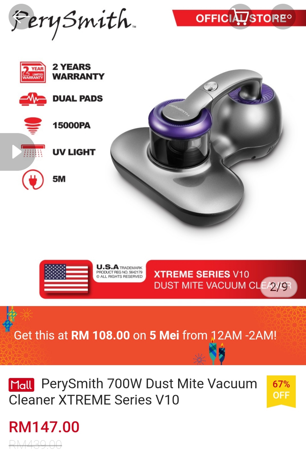 ▪ PerySmith 700W Dust Mite Vacuum Cleaner XTREME Series V10 – RM439 RM108