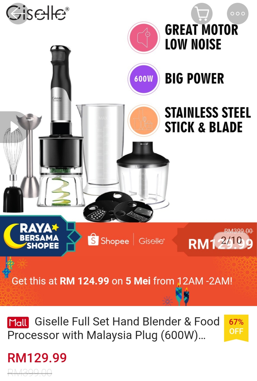 ▪ Giselle Full Set Hand Blender & Food Processor with Malaysia Plug (600W) KEA0188 – RM399 RM124.99