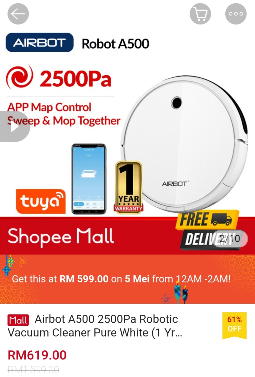 ▪ Airbot A500 2500Pa Robotic Vacuum Cleaner Pure White – RM1599 RM599