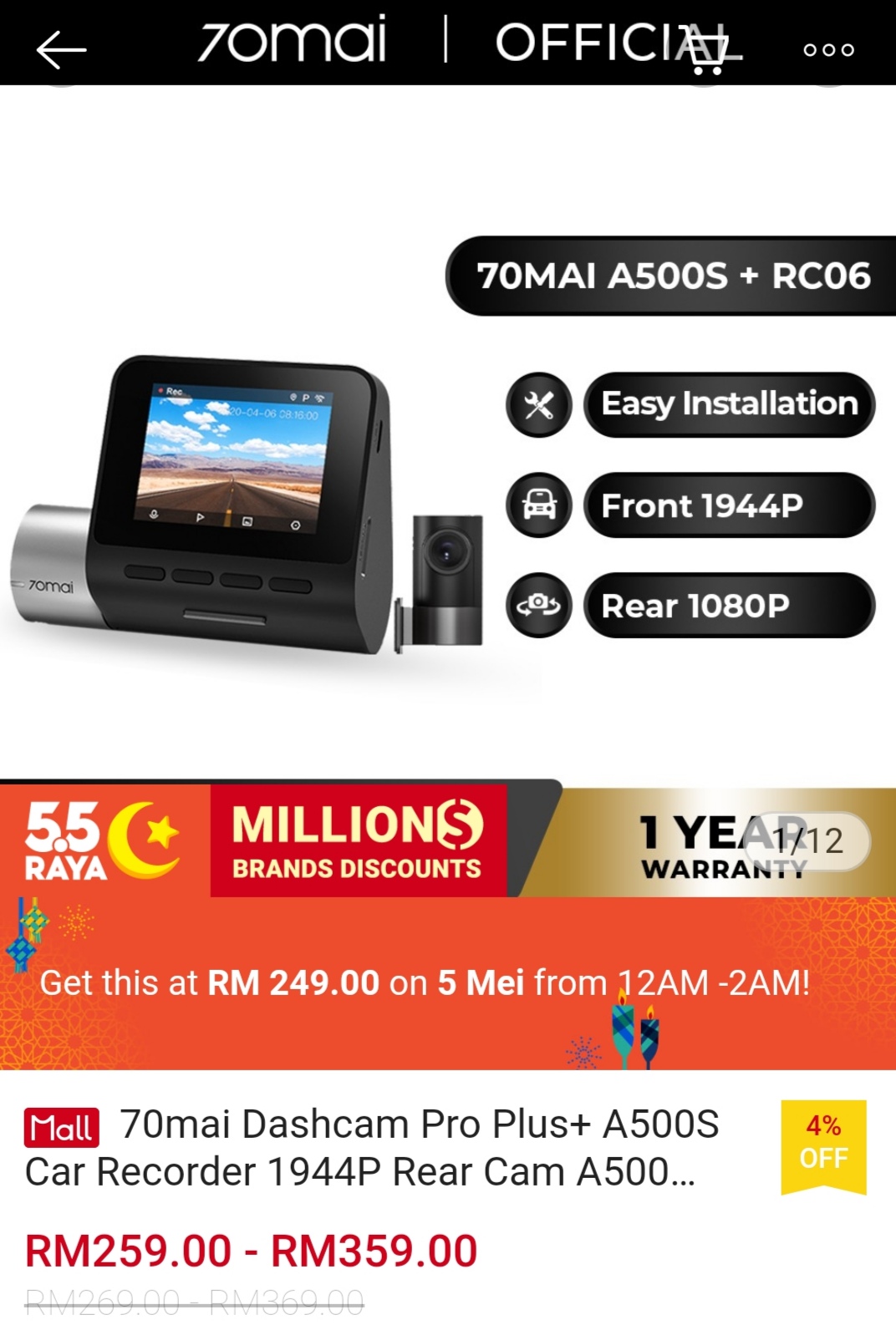 ▪ 70mai Dashcam Pro Plus+ A500S Car Recorder – RM269 – RM369 RM249