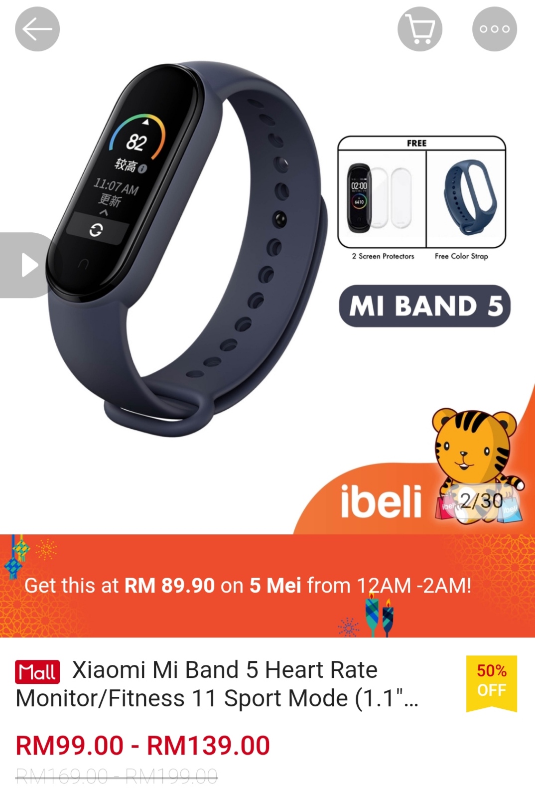 ▪ Xiaomi Mi Band 5 Heart Rate Monitor/Fitness 11 Sport Mode (1.1″ AMOLED Display) – RM169 – RM199 RM89.90