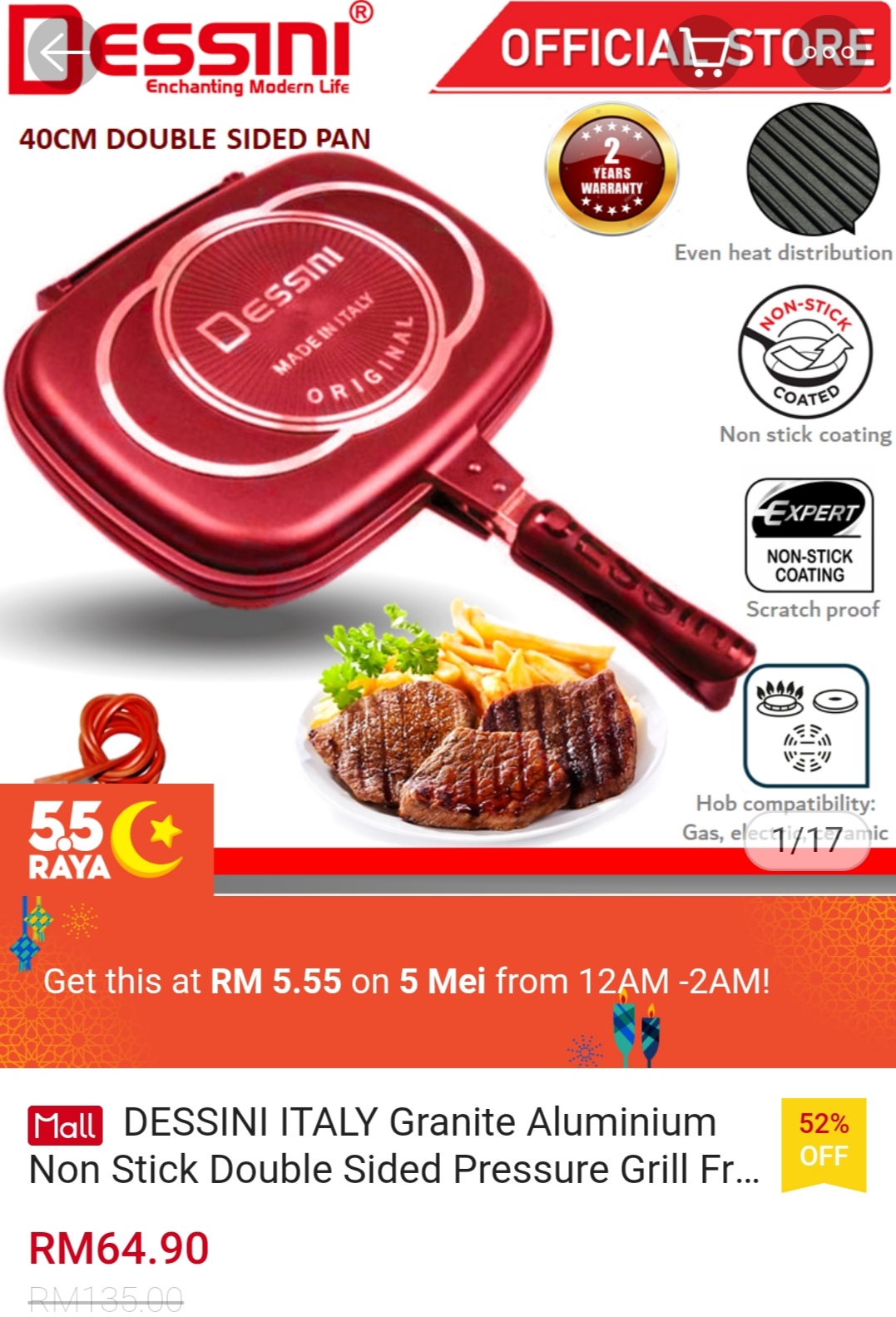 ▪ DESSINI ITALY Granite Aluminium Non Stick Double Sided Pressure Grill Fry Pan Cookware Tool (40cm) – RM135 RM5.55