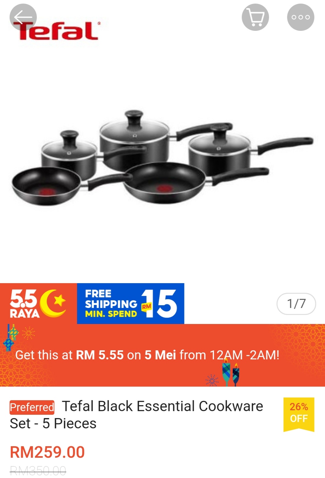 ▪ Tefal Black Essential Cookware Set – 5 Pieces – RM350 RM5.55