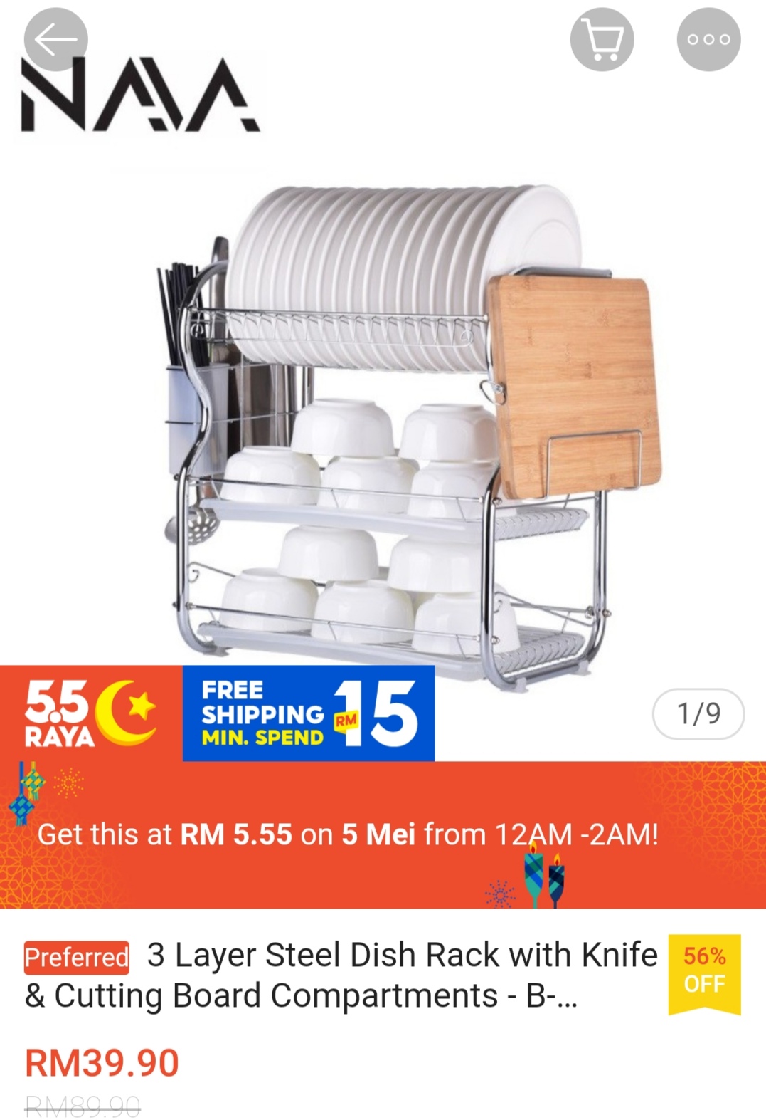 ▪ 3 Layer Steel Dish Rack with Knife & Cutting Board Compartments – B-Shape/8-Shape – RM89.90 RM5.50
