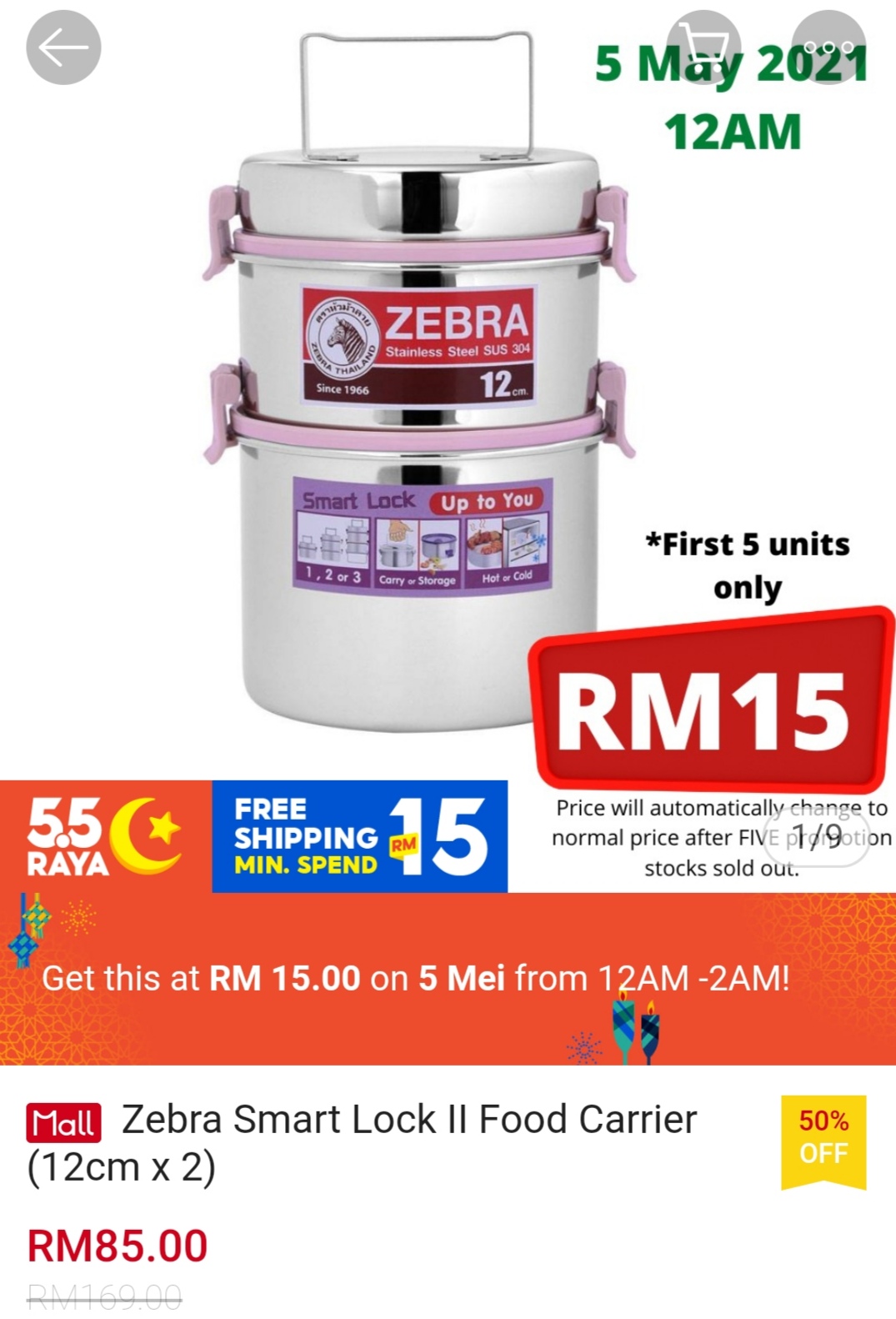 ▪ Zebra Smart Lock II Food Carrier (12cm x 2) – RM169 RM15