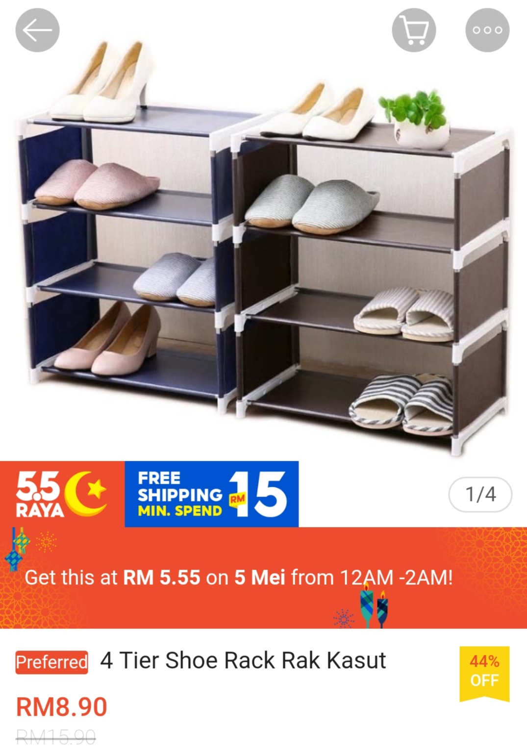 ▪ 4 Tier Shoe Rack Rak Kasut – RM15.90 RM5.50