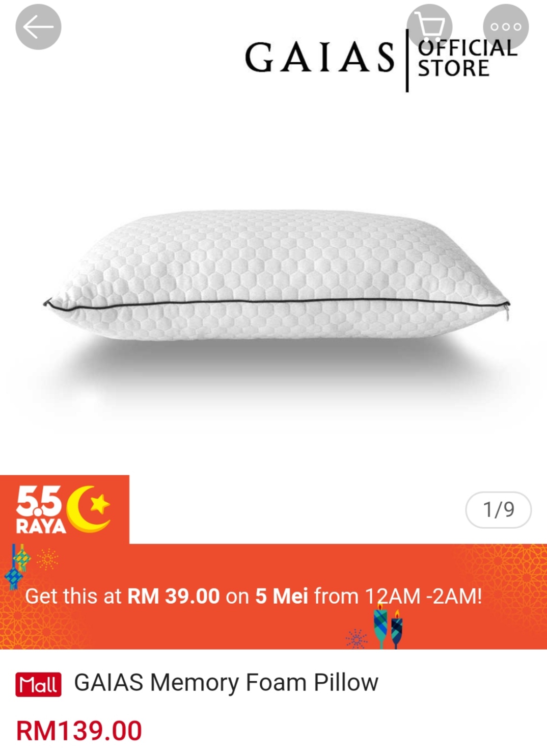 ▪ GAIAS Memory Foam Pillow – RM139 RM39