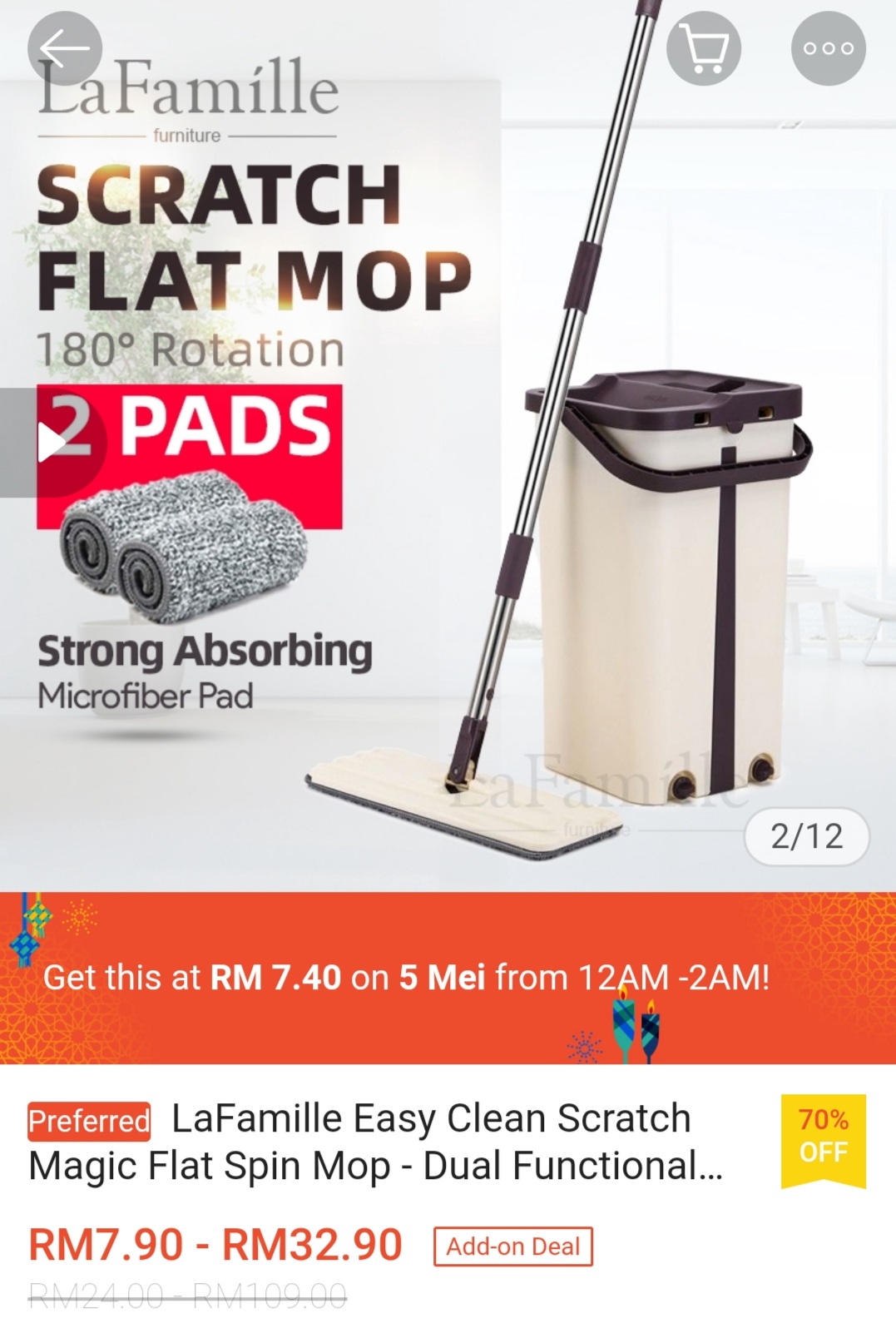 ▪ LaFamille Easy Clean Scratch Magic Flat Spin Mop – Dual Functional Mop – RM24 – RM109 RM7.40