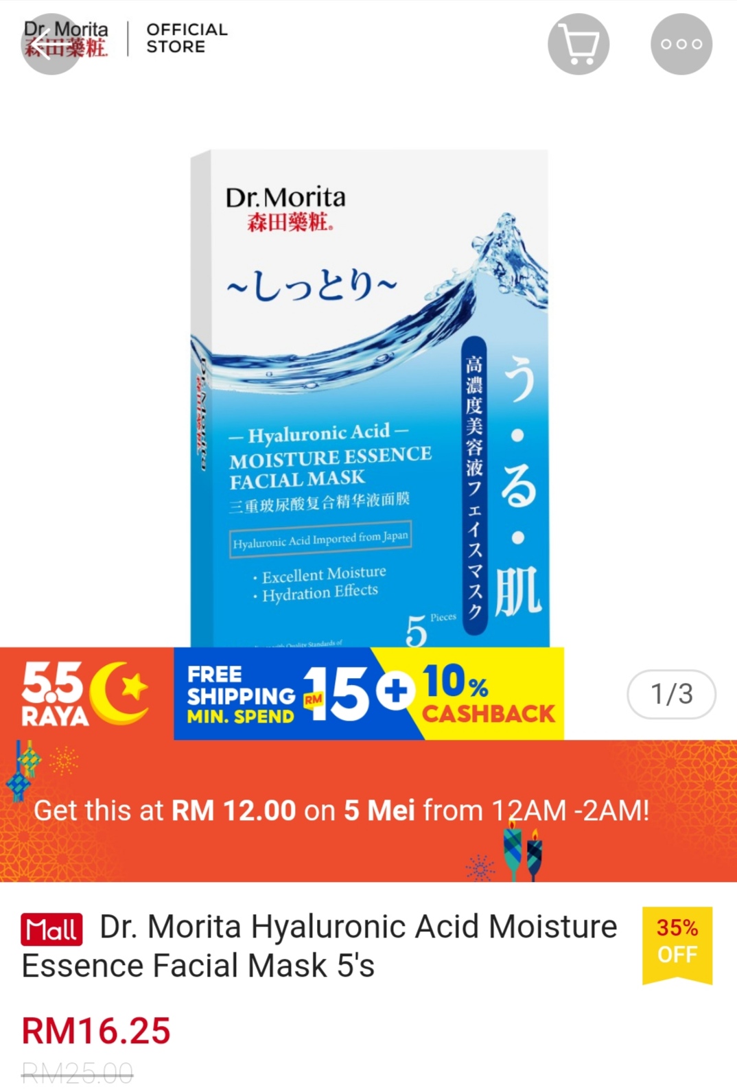 ▪ Dr. Morita Hyaluronic Acid Moisture Essence Facial Mask 5’s – RM25 RM12