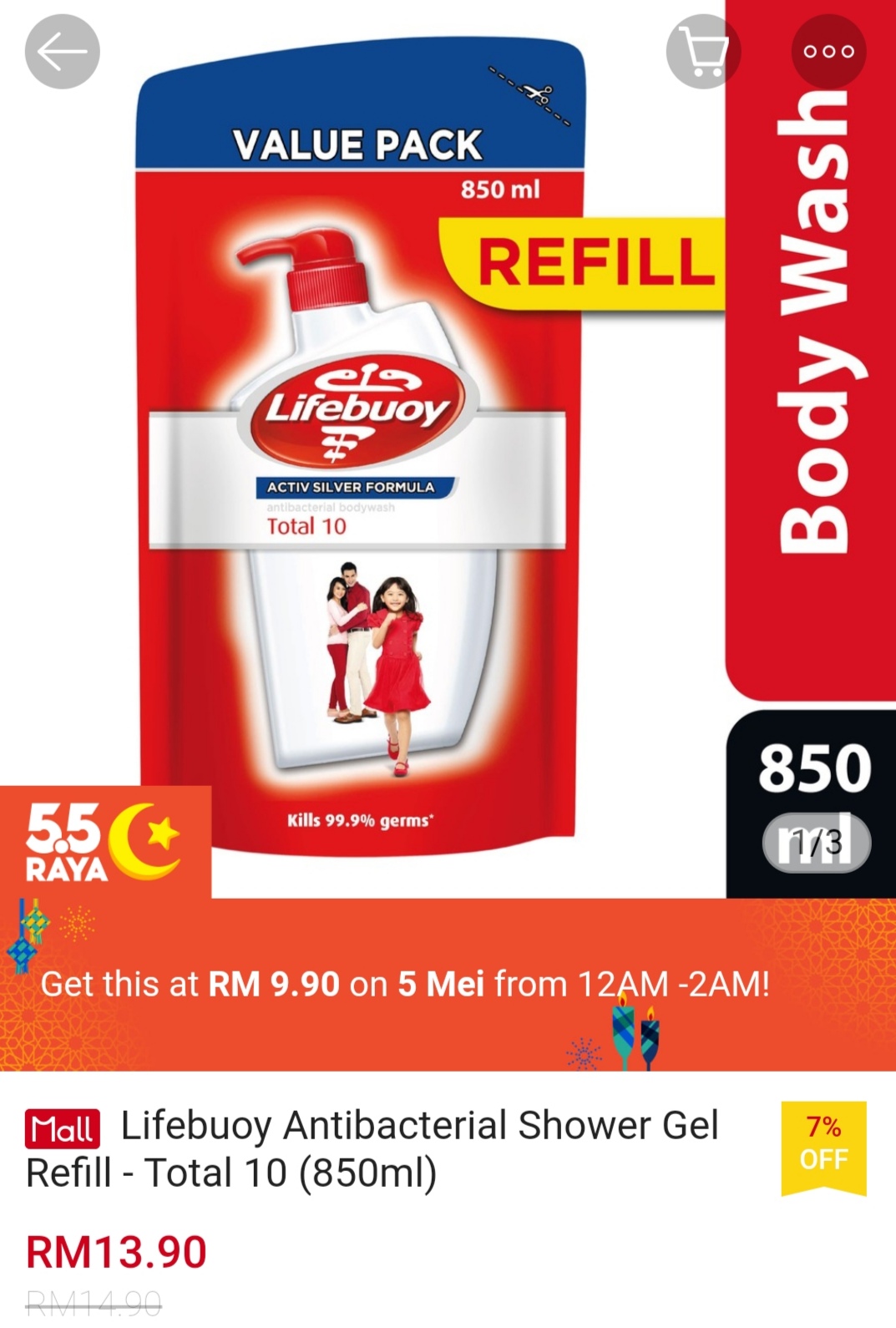 ▪ Lifebuoy Antibacterial Shower Gel Refill – Total 10 (850ml) – RM14.90 RM9.90