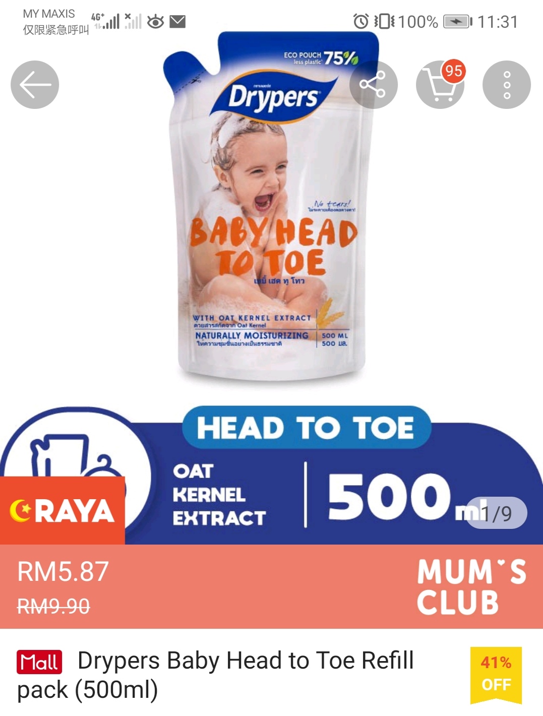 但只有Vinda 4层纸巾有便宜而已吗?!不是的~其实还有其他值得抢购的用品哦!Drypers Baby Head to Toe 沐浴露只需RM0.87、Libresse 卫生巾只需RM1.44!