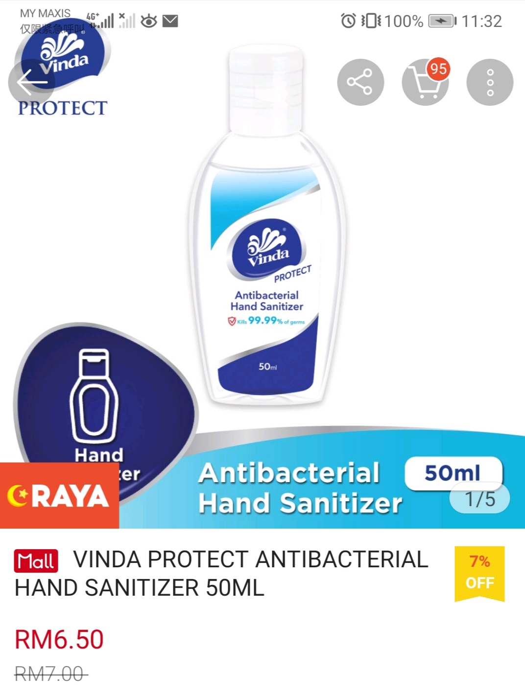 ※配合Vinda RM5 Voucher+ Free Shipping Voucher,一瓶Vinda 搓手液只需RM1.50