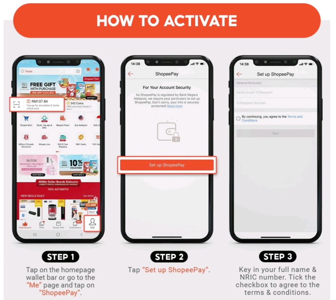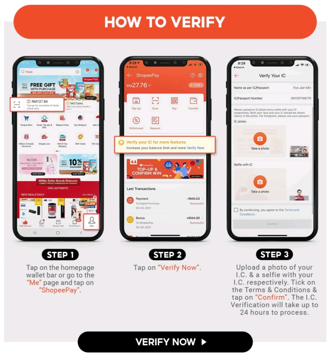 ※ 验证成功之后RM5 电子现金将会在5个工作天内转进你的ShopeePay 电子钱包!