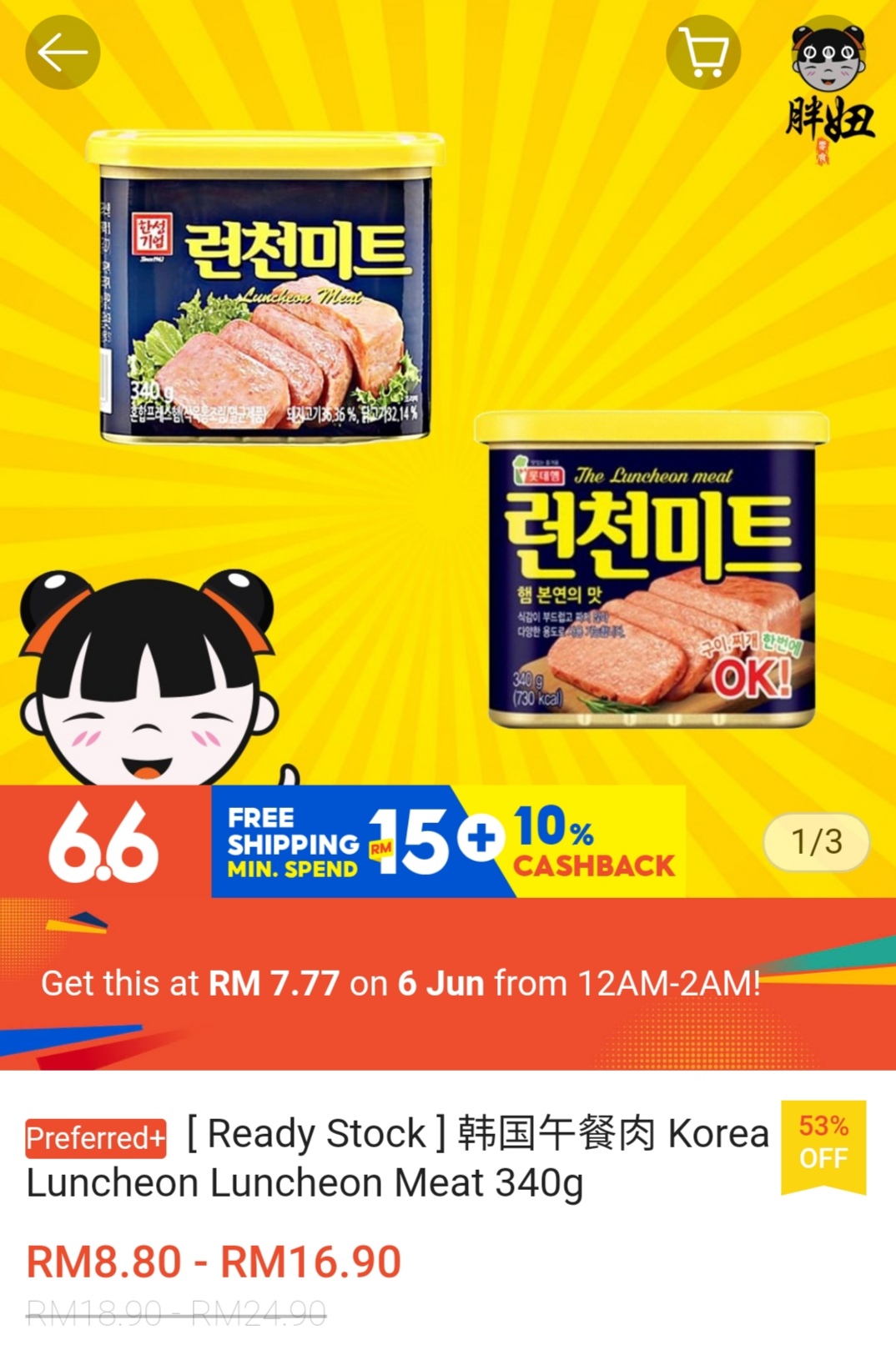 ▪ Korea Luncheon Luncheon Meat 340g – RM18.90 – RM24.90 RM7.77