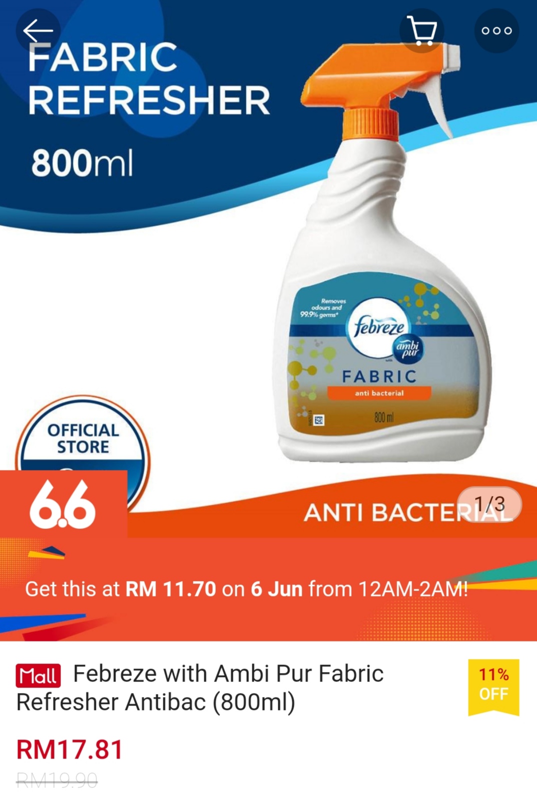 ▪ Febreze with Ambi Pur Fabric Refresher Antibac (800ml) – RM19.90 RM11.70