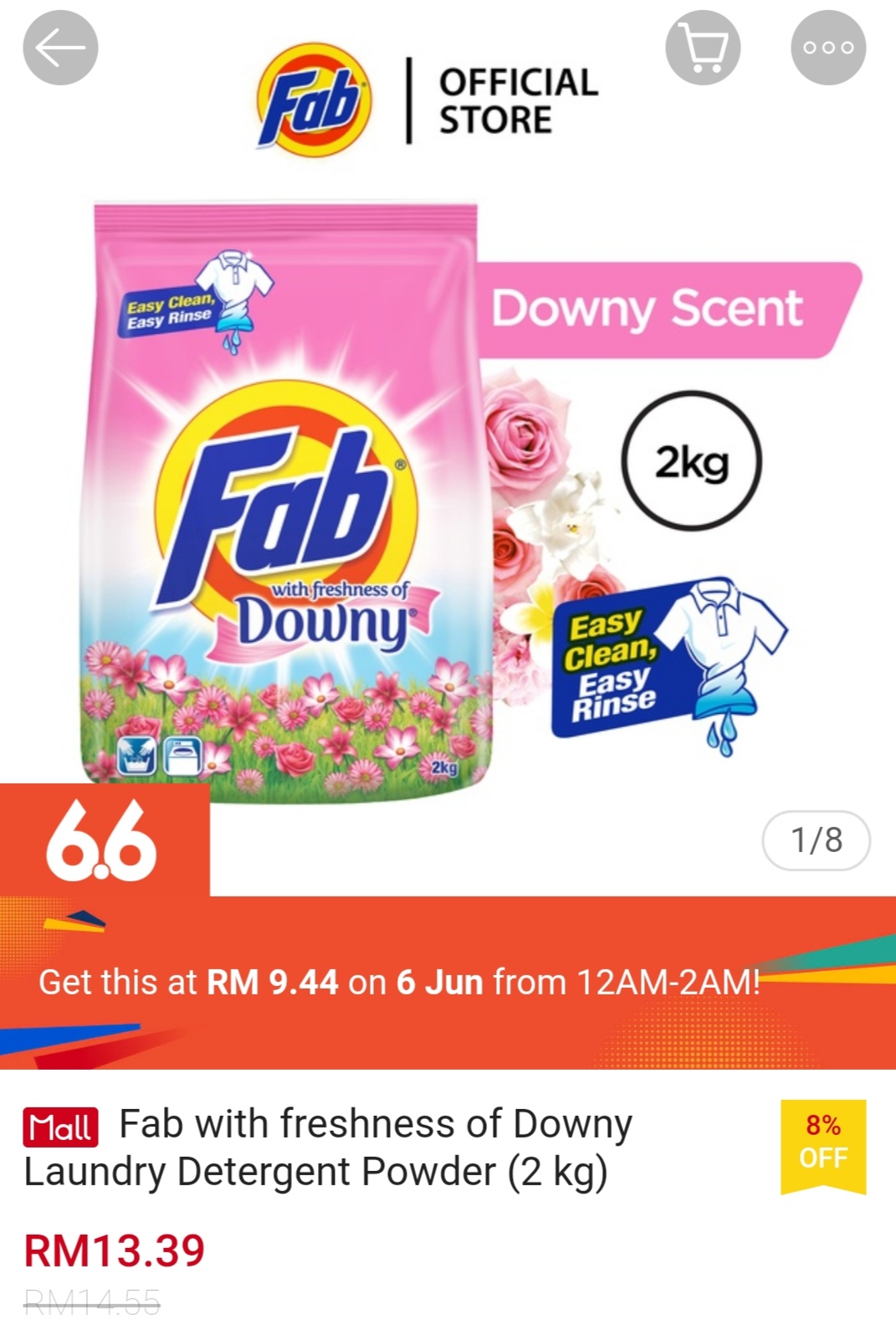 ▪ Fab with freshness of Downy Laundry Detergent Powder (2 kg) – RM14.55 RM9.44