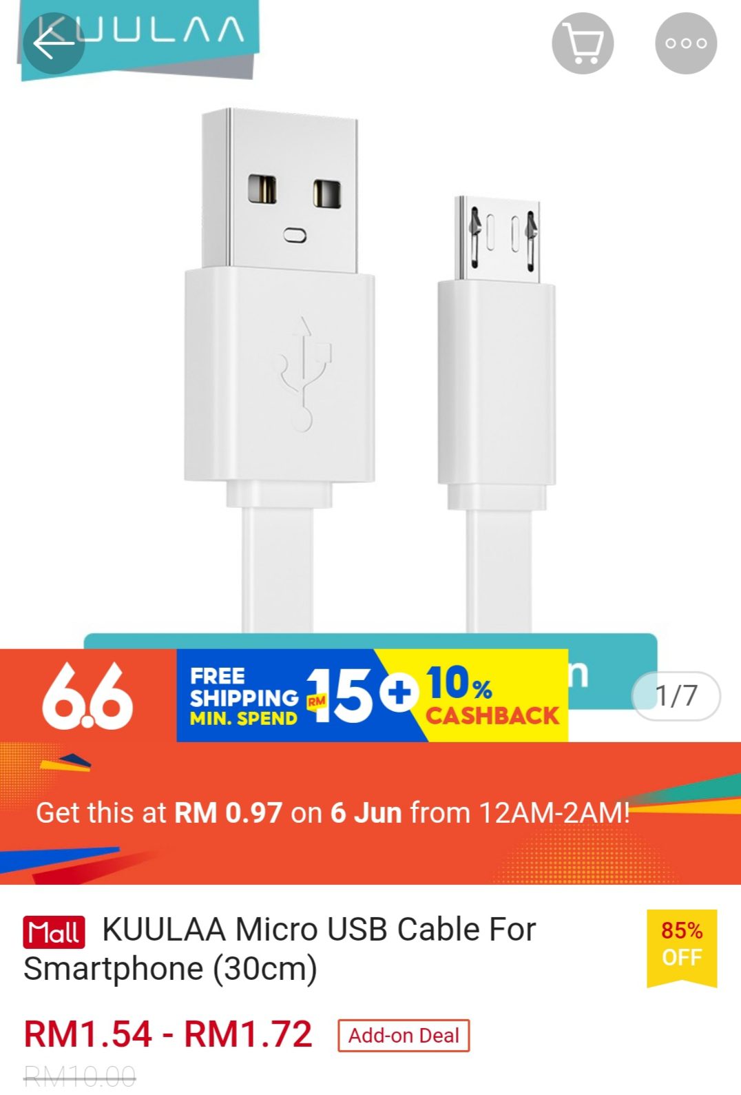 ▪ KUULAA Micro USB Cable For Smartphone (30cm) – RM10 RM0.97
