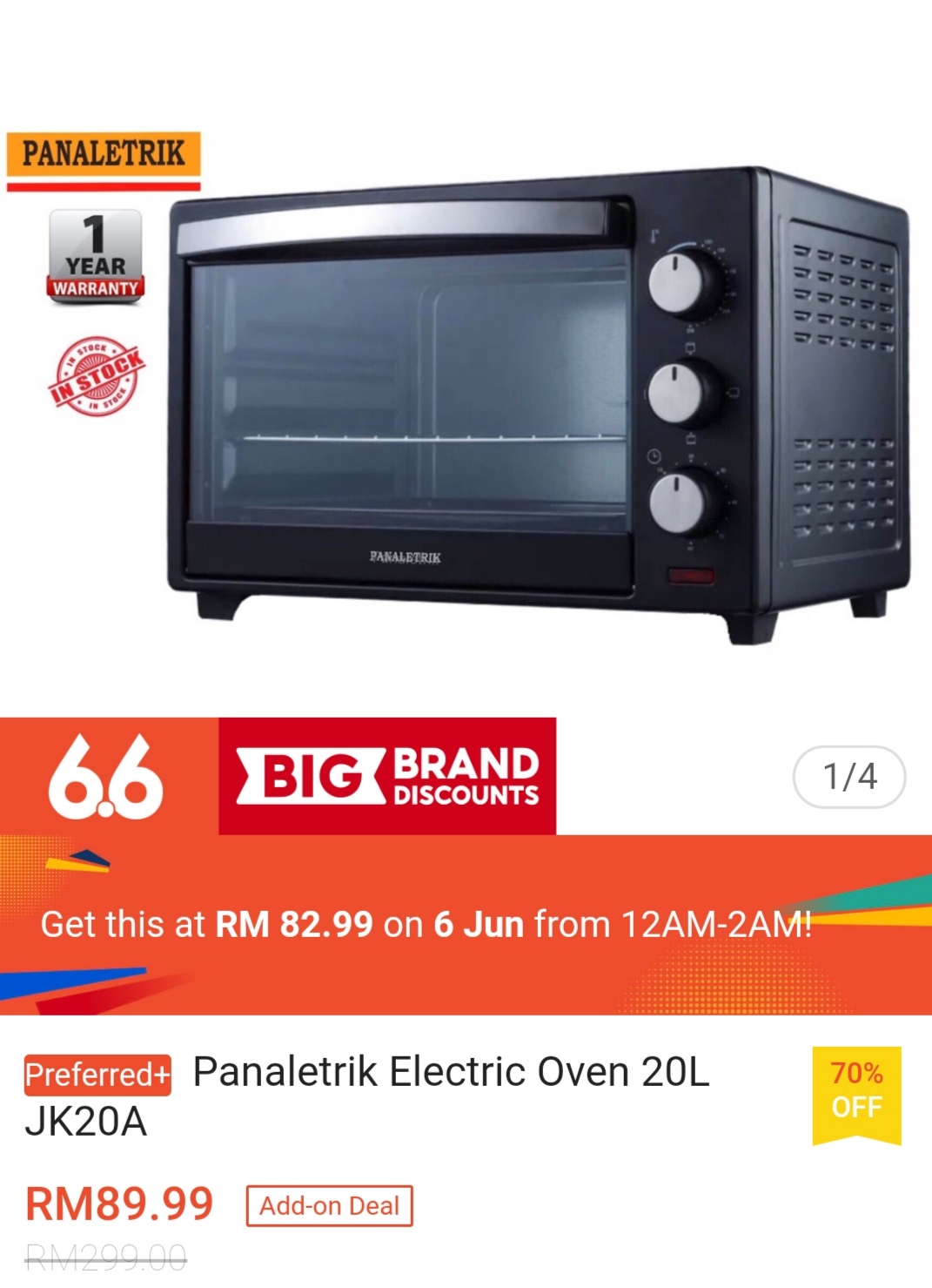 ▪ Panaletrik Electric Oven 20L JK20A – RM299 RM82.99