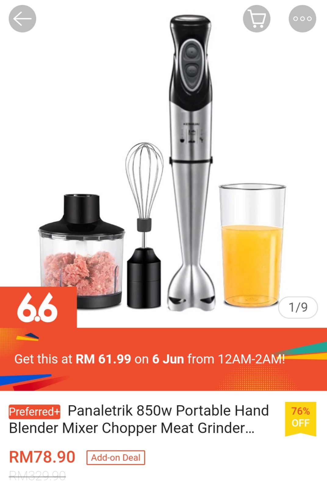▪ Panaletrik 850w Portable Hand Blender Mixer Chopper Meat Grinder Handblender (4 in 1) – RM329.90 RM61.99