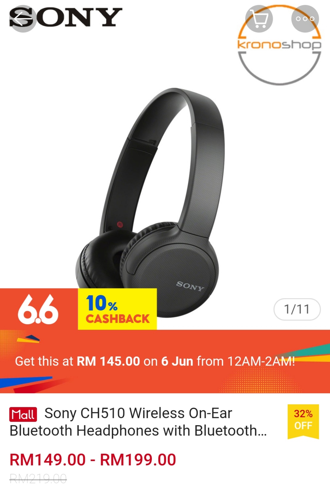 ▪ Sony CH510 Wireless On-Ear Bluetooth Headphones with Bluetooth WH-CH510 WHCH510 – RM219 RM145