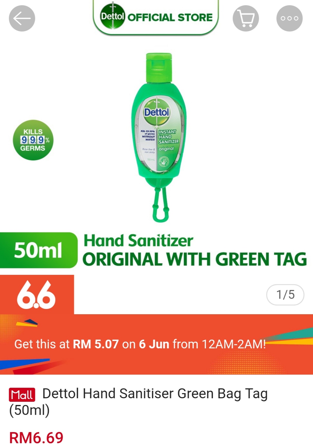 ▪ Dettol Hand Sanitiser Green Bag Tag (50ml) – RM6.69 RM5.07