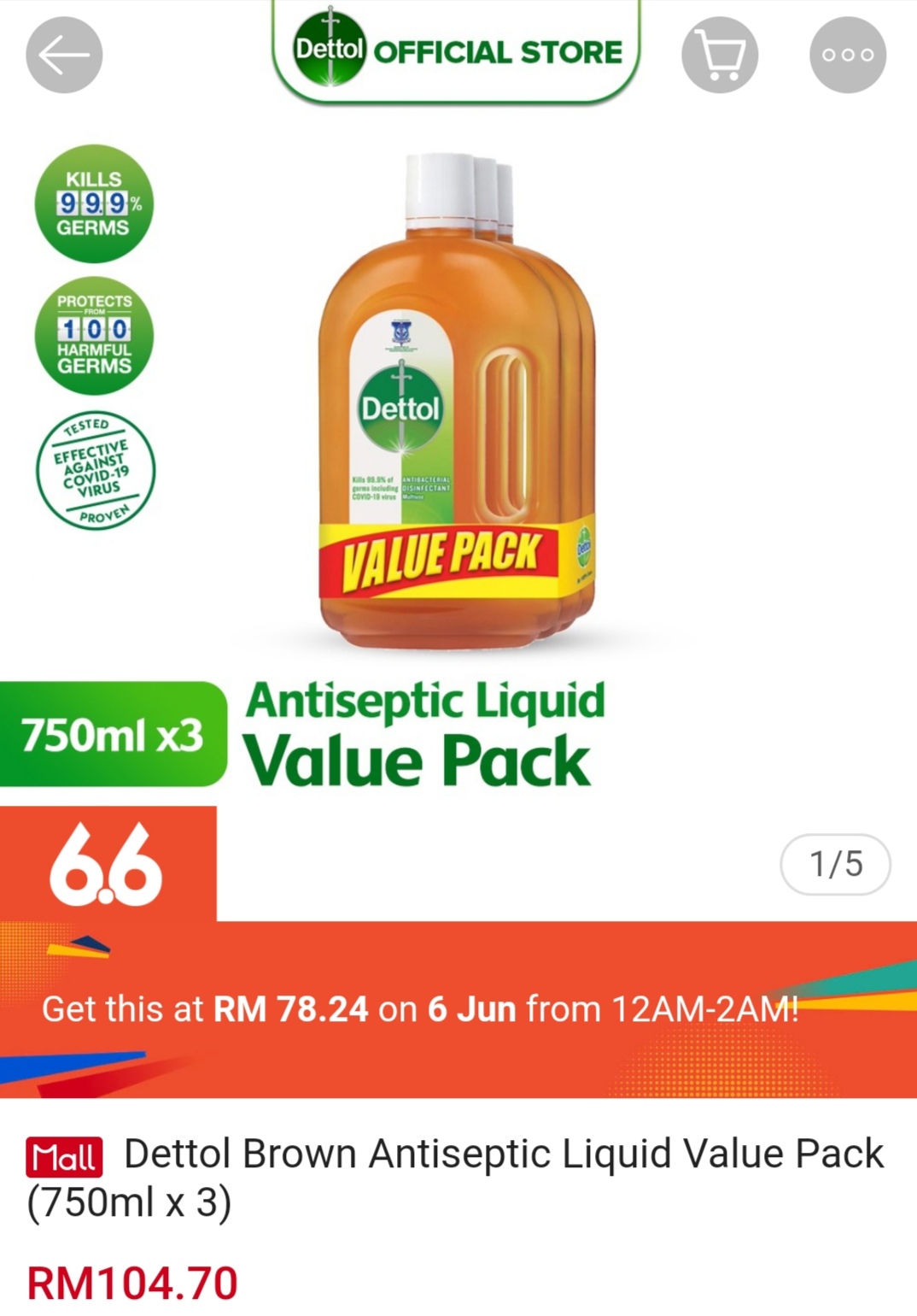 ▪ Dettol Brown Antiseptic Liquid Value Pack (750ml x 3) – RM104.70 RM78.24