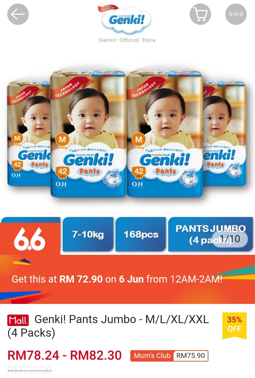 ▪ Genki! Pants Jumbo – M/L/XL/XXL (4 Packs) – RM1120 RM72.90