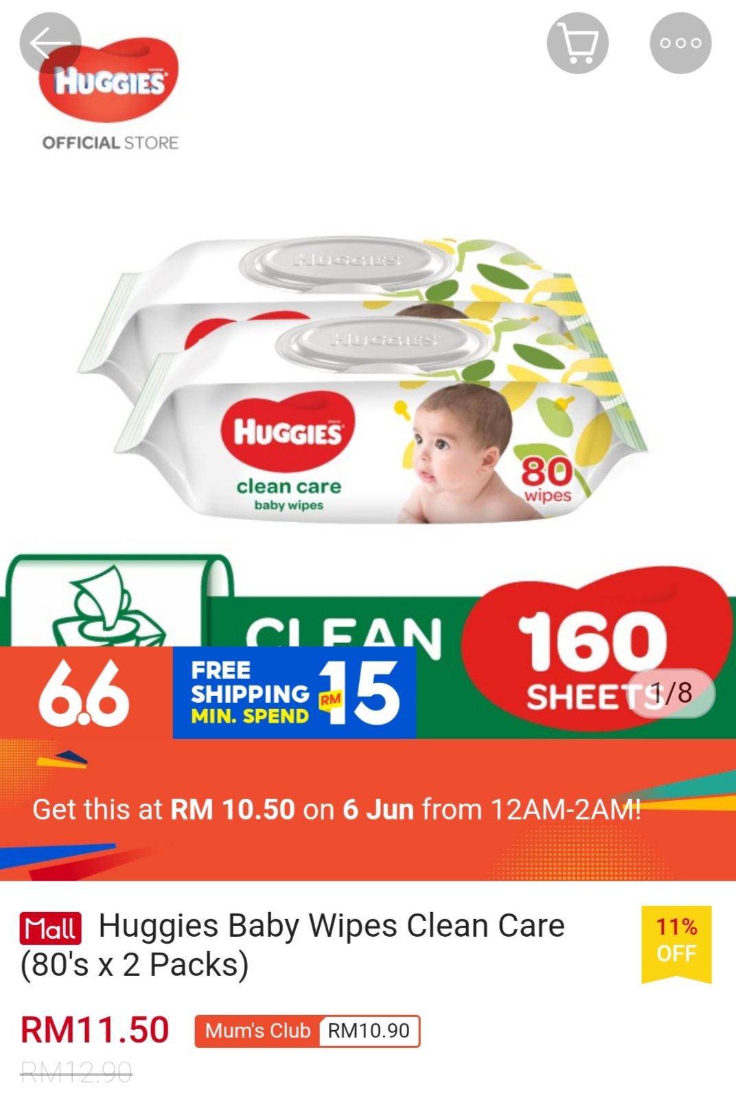 ▪ Huggies Baby Wipes Clean Care (80’s x 2 Packs) – RM12.90 RM10.50