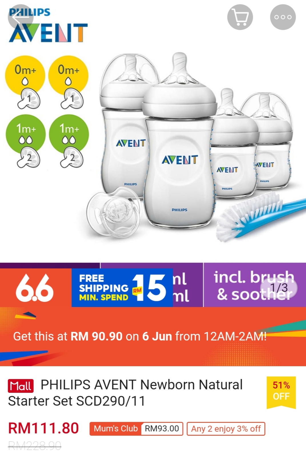 ▪ PHILIPS AVENT Newborn Natural Starter Set SCD290/11 – RM228.90 RM90.90