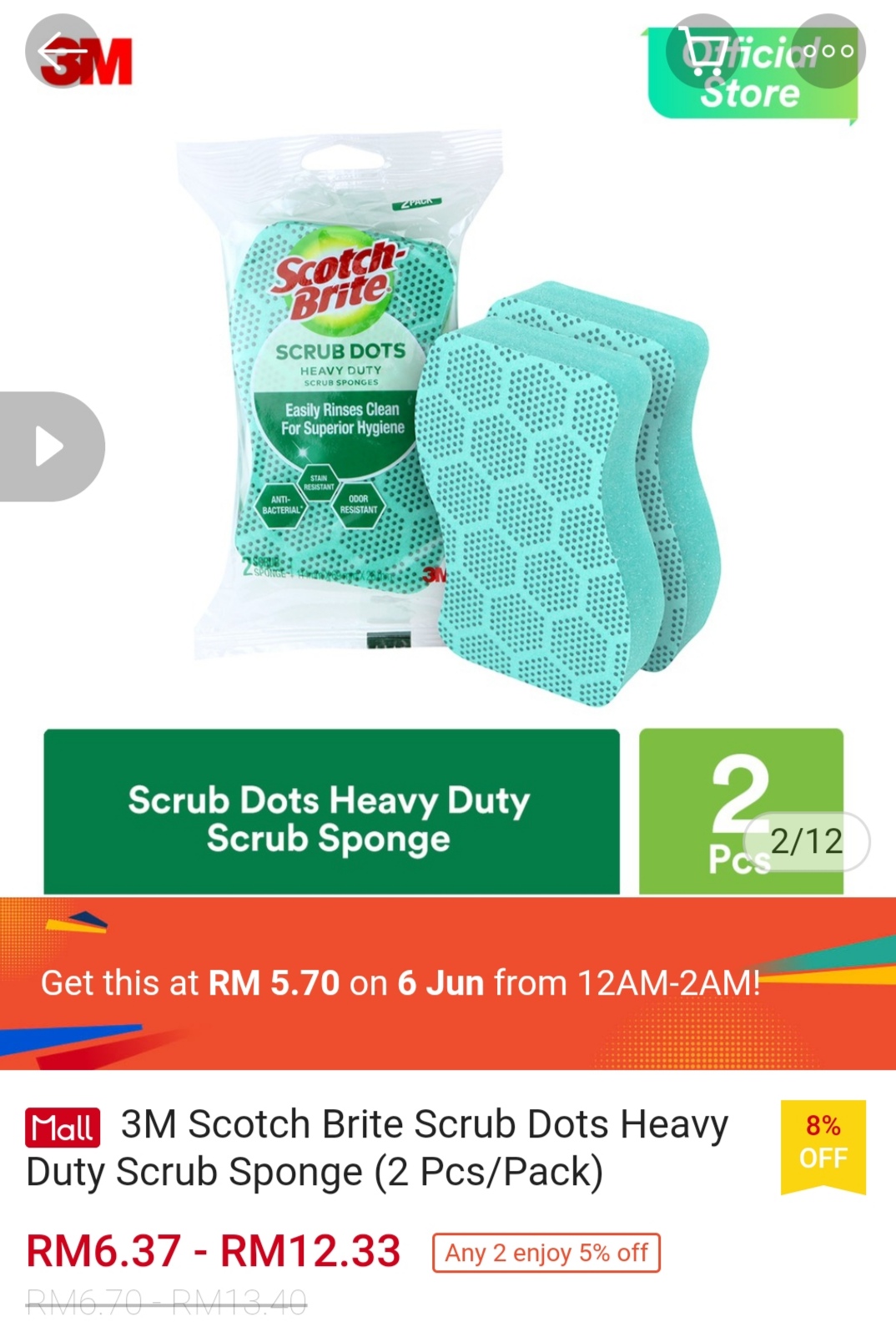 ▪ 3M Scotch Brite Scrub Dots Heavy Duty Scrub Sponge (2 Pcs/Pack) – RM6.70 – RM13.40 RM5.70