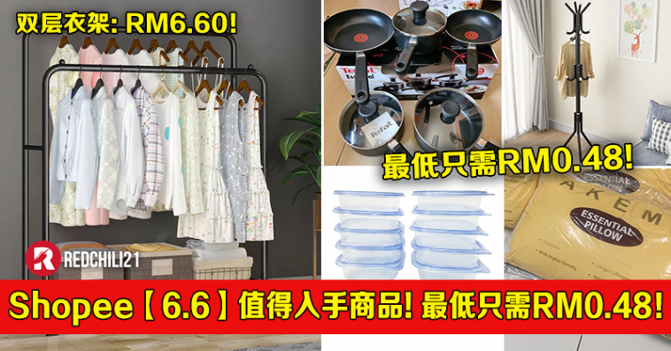 Shopee【6.6】值得入手商品!最低只需RM0.48!1套10个餐盒只需RM0.66、双层衣架只需RM6.60!
